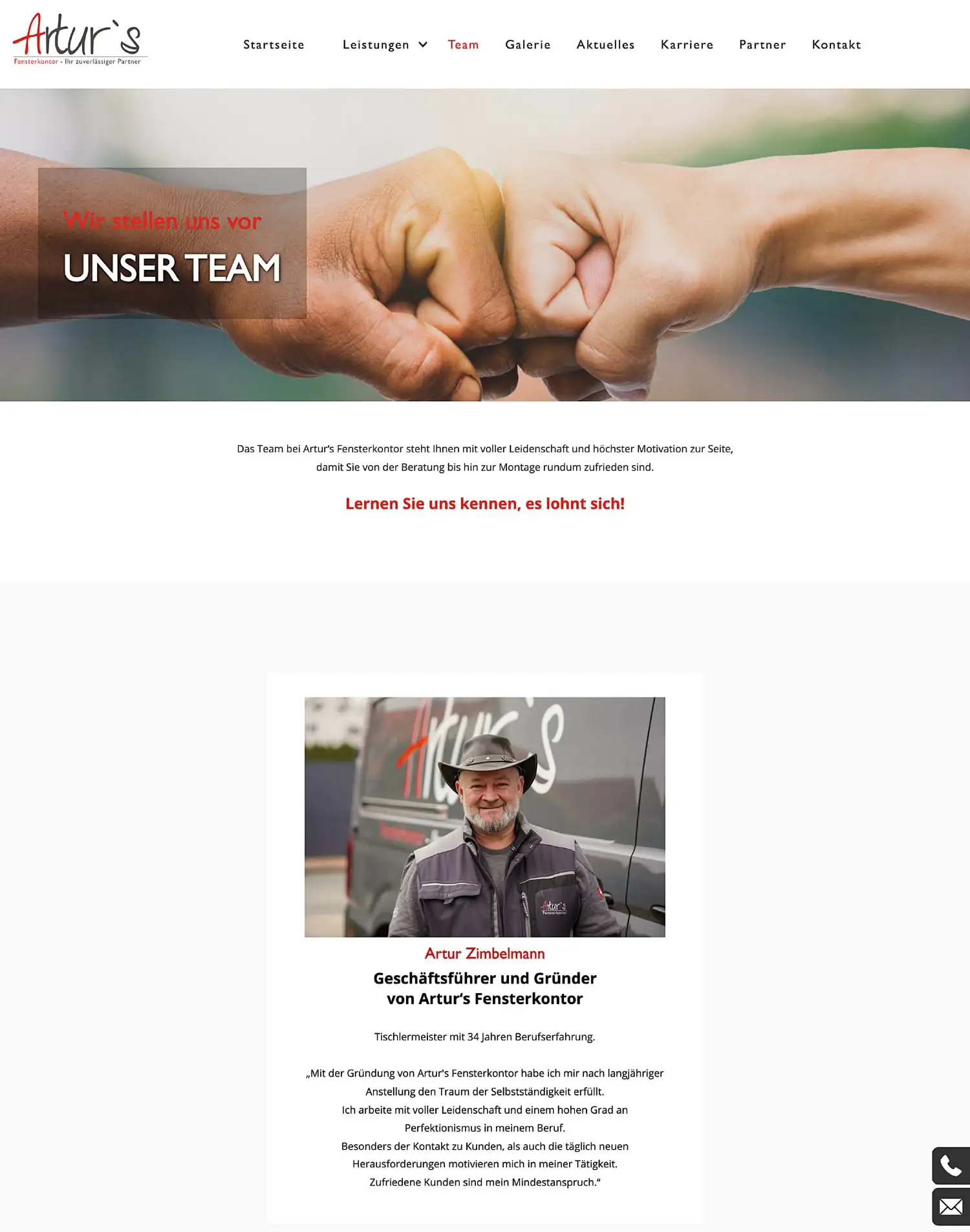 Heute arbeiten wir eng zusammen: Ich betreue die Website laufend und halte alles aktuell – weniger Stress für Arturs Team, mehr Zeit für das Wesentliche.
