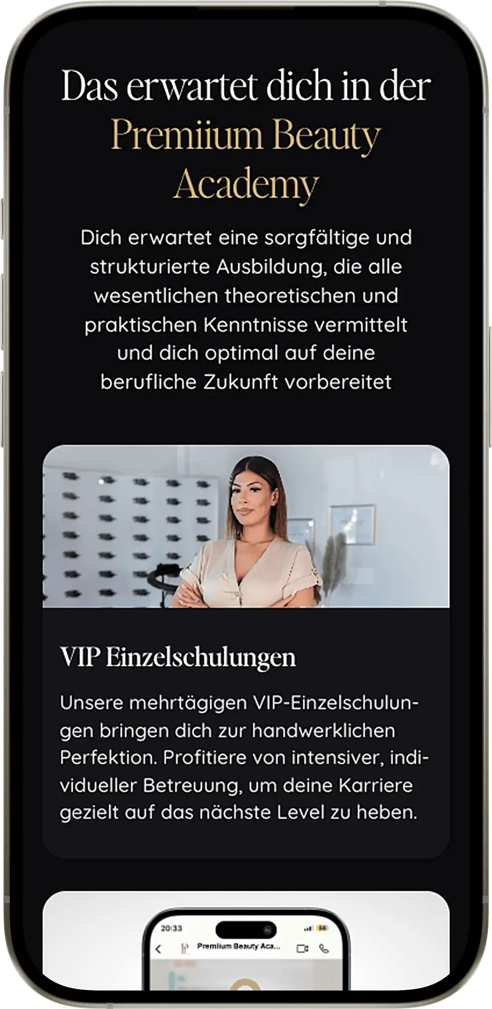 Funda kam ohne Website – aber mit einer Vision: Ihre Beauty-Dienstleistungen und Schulungen sollten im Premiumsegment sichtbar und buchbar sein.