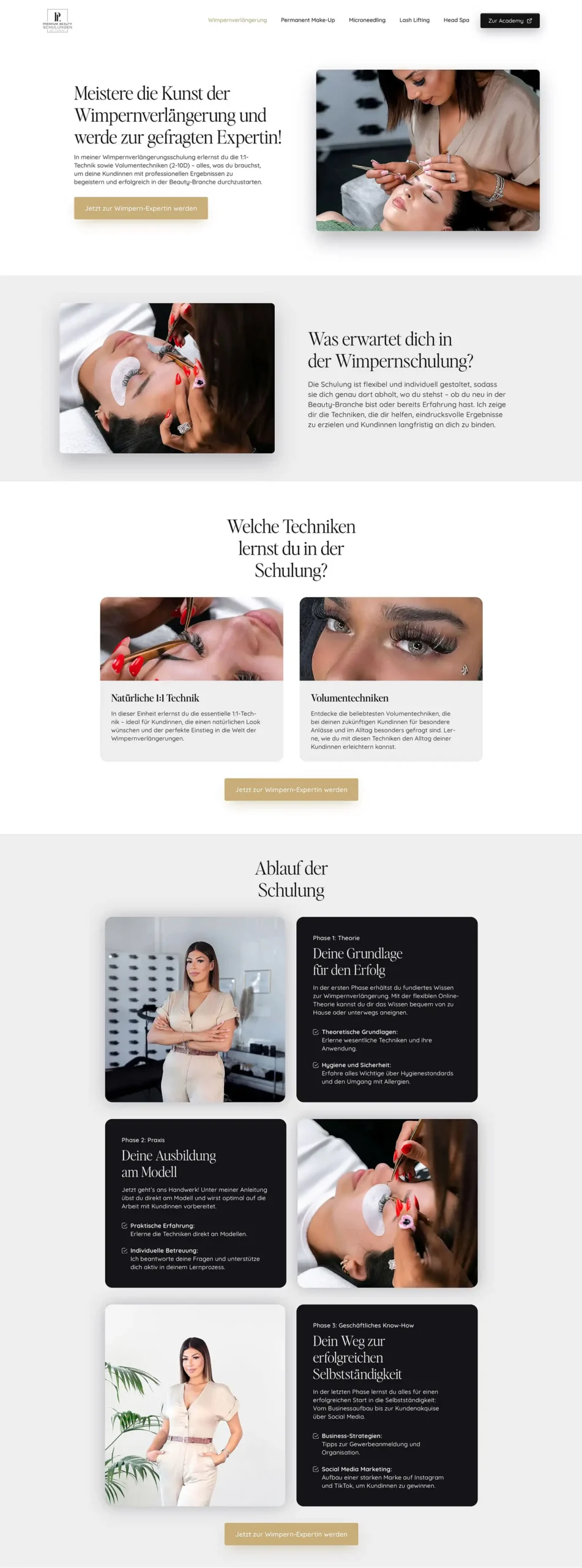 Jede Schulung wurde als eigene verkaufsstarke Landingpage umgesetzt – mit überzeugenden Texten, klarer Nutzerführung und echten Google-Bewertungen.